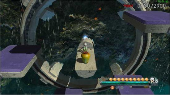 向上至中间平台,体力恢复2*60,向上再向右,上下风车的中间有玉珠,不要错过.