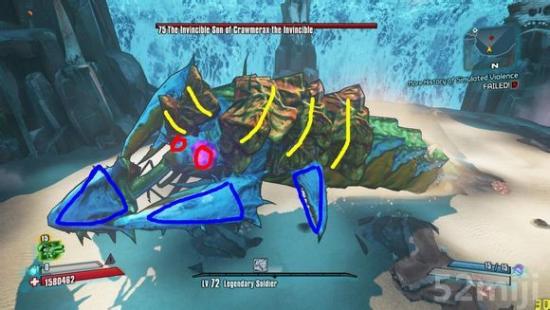 图中黄色线表示虾壳,蓝色表示钳子,一大两小三对钳子。红色表示大钳子上的暴击点左右各两个。其余都是“肉体”。