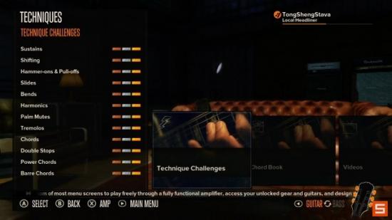这游戏很贴心的在做任何技巧教学时都有真人的示范教学影片,甚至连Pick怎麽拿都很细心的有特别教,即使看不懂或听不懂英文的人看了这样的真实示范影片也能轻鬆的了解怎麽去执行弹奏技巧
