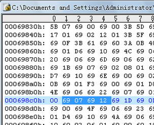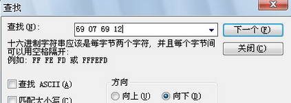 这里我们并不需要管那么无聊的乱码。我们只需要找到我们所需要修改的包子代码就足够了。由前面可得知,我们需要查找的包子代码是69 07 69 12.