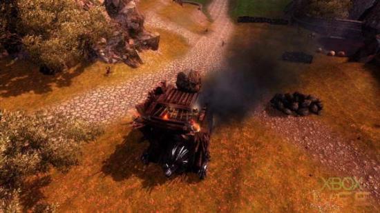 来到第二座投石机后,这次的目标是正前方的弓箭手以及攻城车;比较麻烦的是攻城车,如果玩家没有正中上方木板要害处,必须连续击中三次以上才能让攻城车烂掉。成功把所有敌人砸死后,记得还要砸毁右方的弓箭塔,以免被秒杀。