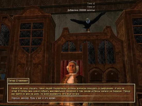 第十项任务,保卫库拉索,西班牙军事舰队由8艘船组成,其中有三艘W,这次可以留下缴获的船用于以后保卫荷兰的殖民地。 登船后立即进入海战状态,全部消灭后返回总督府,得到奖励200000 金币。