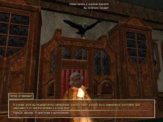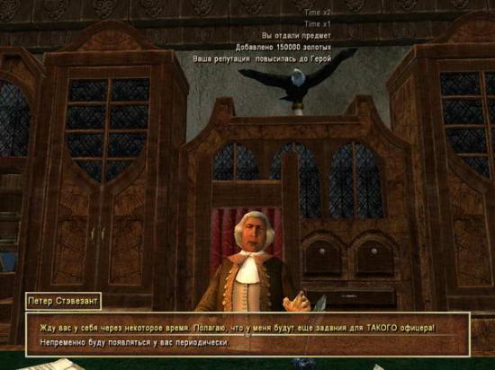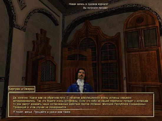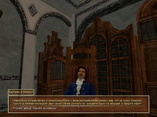 第七项任务,从总督那里取得机密文件并把它交付给图尔图加总督。我们航行到图尔图加,把文件递上后,总督告知两小时后给回复。这期间你可以自由活动。两小时以后,我们再进总督府,得到图尔图加总督的回复文件。此文件也是机密文件,切不可疏忽。我们来到港口正要登船,这时,过来一位信使,告知,荷兰总督在酒馆等着见我。我们进入酒馆上楼,房间里有位陌生人,正要出房间时,被人暗算,等清醒过来后发现图尔图加总督的回复文件不翼而飞。这是抢劫,我们去总督府并向总督说明事情经过,总督让我到港管查询一下刚离港的船只,以便我们在港管那里会发现点什么线索。 我们进入港管,并且我们得到信息,有一艘双桅船 'Ла Рошель' 几小时前离港,目的地波多黎各岛的圣胡安。 我们迅速扬帆启锚争取在他进港前追上这艘船。 在波多黎各岛附近我们追上了这艘双桅船并跳帮捕获。在船长室格斗后,得知机密文件不再这艘船上,机密文件已经转移到一艘西班牙军用船“伊莎贝尔”的船长手里,这艘船正驶向圣卡塔琳娜。我们杀死船长室里的3人后,掉头追赶这艘“伊莎贝尔”,这次追赶未了避免错过机会,我们采取大地图航海模式,在即将进入圣卡塔琳娜海域后进入近海模式,就可找到这艘船,我们跳帮捕获,机密文件失而复得。返回库拉索,交付总督并对经过进行描述,总督大喜,给予15万酬金!