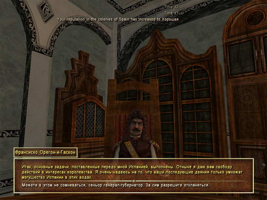 回哈玩那总督处交付任务,和西班牙友好度升至最高!获得海军上将军衔。(无金钱奖励)