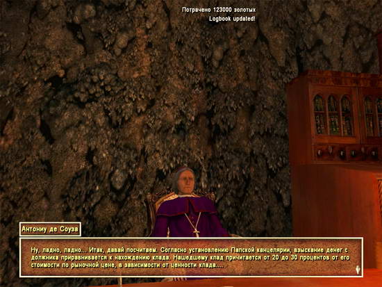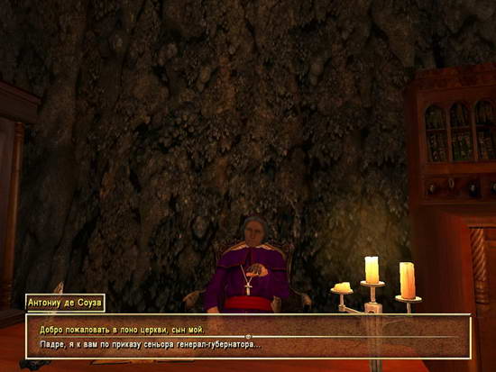 一段时间后再次拜见西班牙的总督,(一般20天——30天左右)获得新任务,然后去圣地亚哥教会监狱会面大主教。(在圣地亚哥大教堂下面,楼梯下面的一个入口)进入后,找到大主教,对话,任务更新。出来后遇到牧师安东尼奥德索扎,和你主动对话,任务又更新。要求向3个亵渎宗教威严的人收取救赎金。让我们航行到库拉索,荷兰所属岛。(即荷兰母港)。到商店处,对话选第3项,任务更新.(有意思的是,我玩到这里居然顺便接到一个新任务,后来一查才知道是木乃伊粉的任务!不接都不行,每次读档重新去商店对话,总是能接到这个任务!)然后航行到Porto Bello 步行至巴拿马,在巴拿马商店,同样对话选第3项,任务更新。 在城内搜索,发现在总督府右边的一间屋子有一伙强盗。一楼PK完以后,上2楼PK ,打完以后主动和一位被绑架的NPC对话,NPC上你的船,并透露一个新的消息。(关于丢失的圣经),这时可以直接航行到百慕大,去船厂,和造船大师对话,选第2项再选第2项,发现此时左边的门可以打开了。进去以后就是和一群骷髅打。打完,在最里面的一个地方发现N多宝贝(包括任务物品——圣经,最好的重剑,中量级剑、各种枪支、宝石等)。现在回到库拉索,荷兰所属岛。去商店处对话,开始选择第2项,后选择第1句,把圣经交给他,获得10万救赎金和另外100万奖励。然后去当地银行,对话选第2项(选第一项会发生战斗)任务更新。再去酒馆和女招待对话选第2项,任务再次更新。让我们航行到牙买加(皇家港附近偏左一点的位置)在近海模式下发现一艘海盗船,靠近跳帮,捕获船长。回库拉索,荷兰所属岛银行处交任务。获得5万救赎金。先去圣地亚哥教会监狱和大主教对话,获得12.3万左右奖励!然后回哈瓦那和总督汇总,任务就此结束。