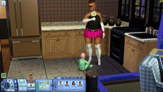 阴险的抢夺婴儿的棒棒糖