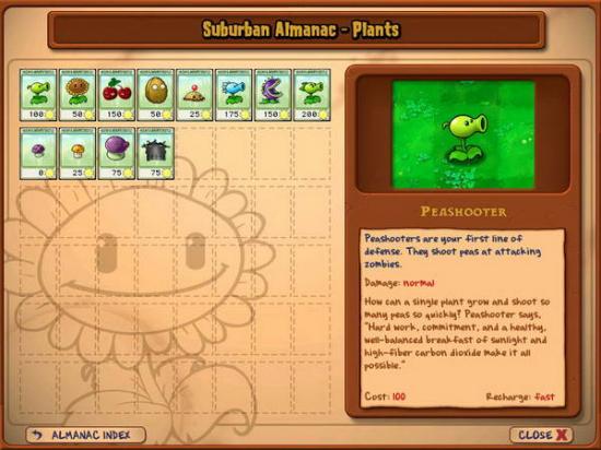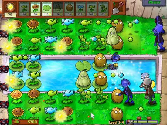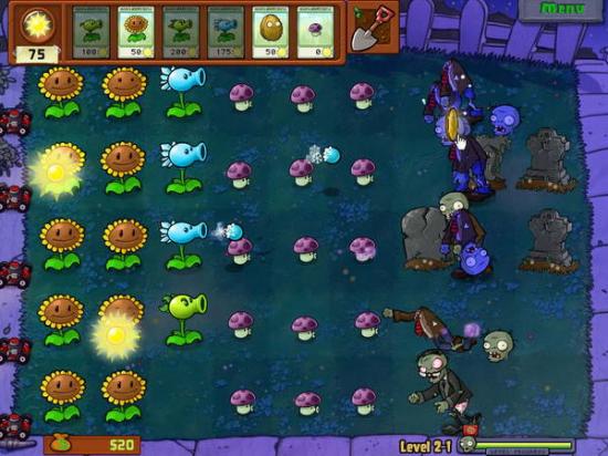 这是一款 PopCap 推出的新作品:Plants vs. Zombies,玩家将善用各种植物,抵挡恐怖的僵尸群们攻击玩家的房屋,战场位於房子外面的花园,画面中会不断掉落太阳能量,尽量收集太阳能量来设置各种植物的最佳战略位置,才能挡住一波波来袭的可怕僵尸。