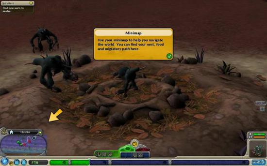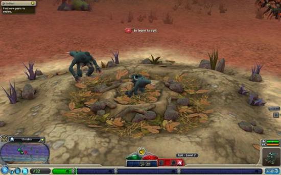 当你在进化时获得新技能的时候,新生命出生时要学习新技能的使用方式才能长大,不然可能会出现无法动弹的情况。图中是要求玩家使用“喷射”技能,新生命出生的时候注意观察画面上方的提示。