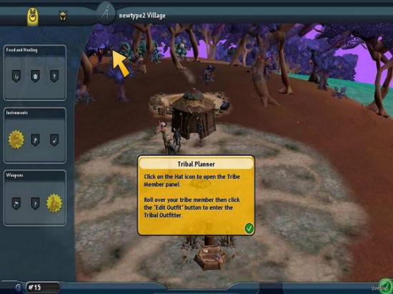 这是部落规划界面,非常简单。点击左上角的帽子图标,然后点选出现在左侧的部落成员图像左下角的“Edit Outfi”按钮即可进入装备界面。