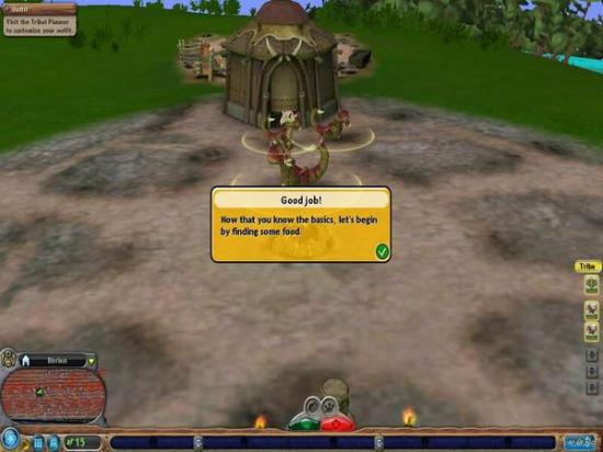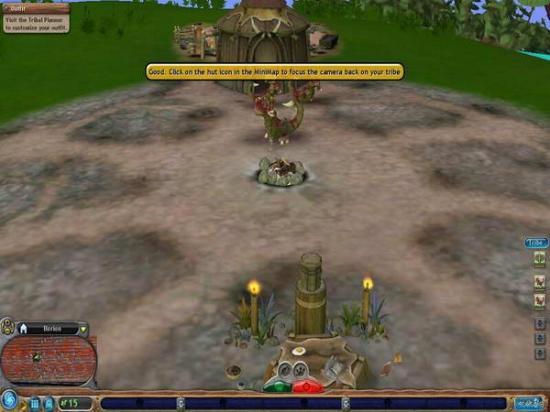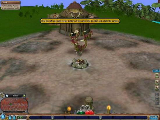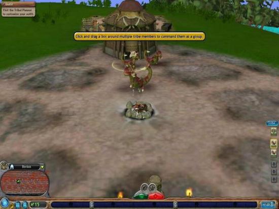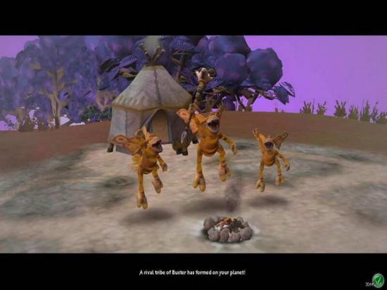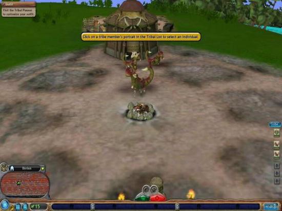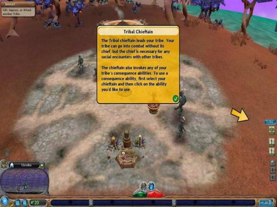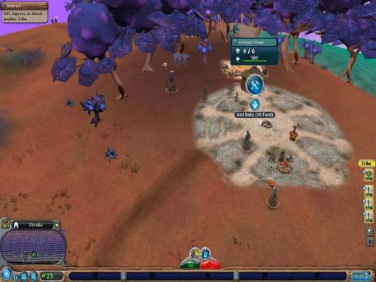 增加部落人口,按下图中这个较小的Add Baby按钮,即会有一个蛋从棚屋中滚出来。虽然我们不清楚这是什么原理,更不清楚为什么会在还未孵化之前就滚出来了,但可以肯定的是,那个棚屋必然是个藏污纳垢之所。
