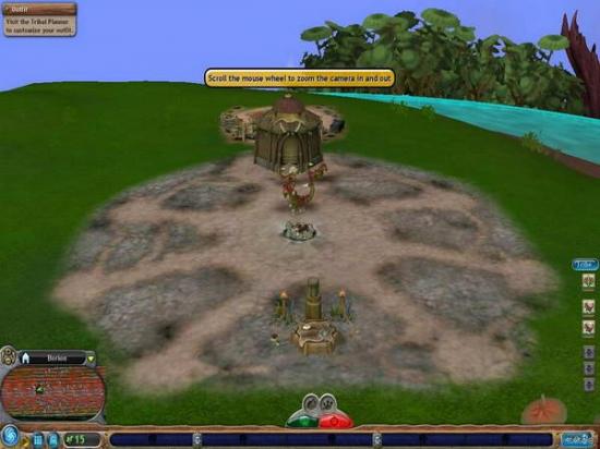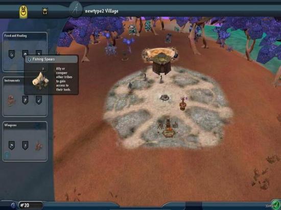 接下来开始讲解部落规划。第一个建筑是生产鱼叉之用。捕鱼是收集水果和狩猎野生动物之外的第三种补充食物的方式。但你的部落是否能够使用这种方式要取决于你的部落是否在水边,还要看你附近的水域是否有鱼类生存。建立该建筑后,部落成员即可从中拿到鱼叉,可以增加捕鱼过程所获的食物。该建筑要通过剿灭其它部落或与其它部落结盟获得。