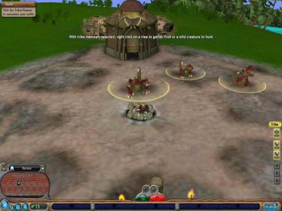 选中部落成员之后,右键点击树木来获取水果,或者点击野生动物进行狩猎。在部落阶段,貌似已经没有素食跟肉食的区别了,啥都能吃。