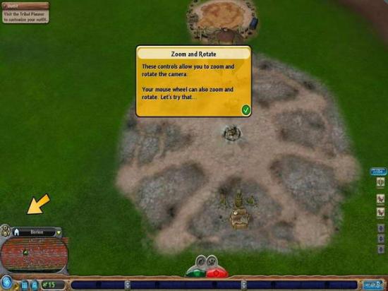 点击小地图上的棚屋按钮使画面快速回到部落。