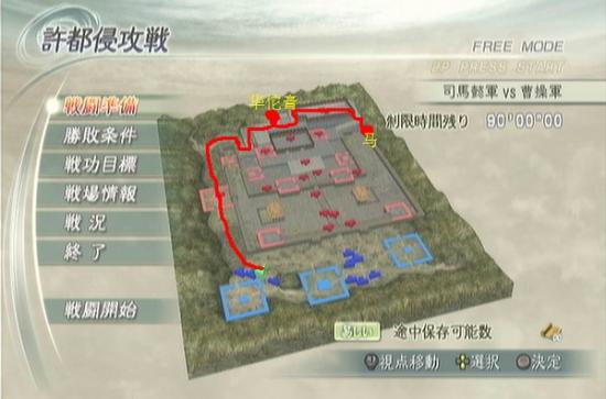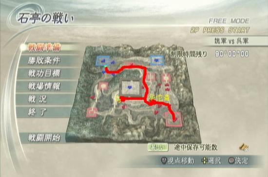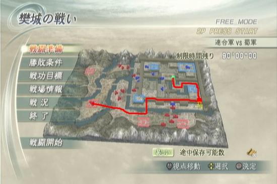 这关关键是地图小,首先直接冲上山,据点门肯定是不关的,然后直接到曹休所在的城南门外右边有一匹马,然后从地图所示路线跳下,正好可以加到华佗膏,然后直接进本阵杀掉孙权,全程1分20秒左右,有好马会更快。