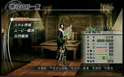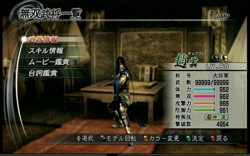 赵云 系列传统主角 本作走的依然是平均路线 先说说子龙的优点吧 无双很赞 无双终结技很实用 无双连舞时攻击速度不错 前三下连舞攻击很赞 拥有并列全人最速的神速攻击 此外 子龙的杀阵攻击范围很大 是高难度下安家保命的王牌 而且配合斗志 杀阵后基本都能集满无双 再来说说子龙的缺点 连舞攻击范围不够大 多为直线攻击 无双前半部分也多为前直线的连续攻击 有命中失败的可能 需要技术来控制无双命中 综合来说 子龙属于需要一定技术才能操作好的角色 非民工角色 实力也属于中等 符合主角的定义 但是 子龙配合好的武器和战术 还是能发挥很强的战力的 技能盘方面 延长+猛进 配合子龙的高速神速 还是很不错的 斗志是为了给子龙的杀阵服务 子龙是少数同时拥有战鼓和神速指挥的人 所以配合友军的作战能力很强 如果子龙能够有个开书 实战能力将大大增强 武器方面 冰+一闪+精灵印是必然的 由于子龙的杀阵强 所以武器有刚柔法也是非常重要的 此外 由于子龙的无双终结技强 在高难度下 真乱舞+一气呵成的技能也很需要 不过要配合打+跑的战术