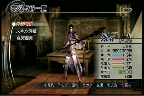 张郃 长枪组1中的高手 连续重攻击跟别人有一定区别 是连续的紫花的范围攻击 很不错 连舞攻击保持长枪组1的水平 范围距离都不错 而且张姐姐是长枪组1中攻击速度最快的一人 所以手感很不错 无双也还可以 技能盘方面 分身.级是本作三大bt技能之一 配合张姐姐本身就不俗的攻击速度和神速 能使得张姐姐的战斗力再次提升一截 张姐姐也是和陆逊一样 有着多种的移动技能的 此外 张姐姐的攻击的声音实在很赞 被打时也是 讨取敌将的声音也是很赞的 而且张姐姐2p衣服很赞 呵呵 综合来说 张姐姐属于魏国里上手比较快的人物了