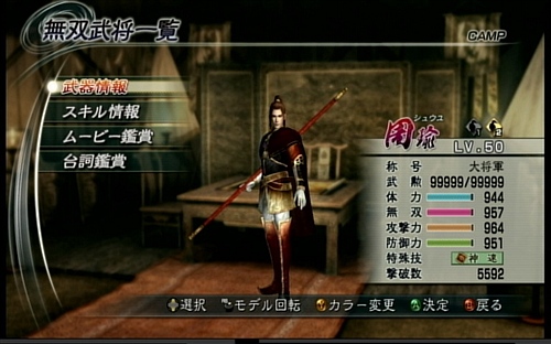 周瑜 周大圣可谓本作的综合最强人之一 攻击速度非常快 连舞攻击速度很赞 距离也比较适中 虽然前几下的范围稍短 但是配合标准的武器就没有问题了 连舞攻击的多次连续后的最后几下比刘备的转圈圈还强 范围非常大 属性伤害输出频率很高 本作又一个冰冻达人 连续重攻击的范围不错 但起手速度稍慢 无双也很出色 连续命中强 技能盘方面 斗志+延长+分身+大喝+开书+神速指挥+战鼓+传书袋+增进 可谓是最全面的技能盘配置之一了 除了传书大袋 而且周大圣的神速有着赵云神速的速度 并且神速重攻击也很出色 武器方面 冰+一闪是基础了总的来说 周大圣是上手很快 综合实力也很强的人 在修罗难度下 会更显出周大圣的强大的综合能力和生存能力