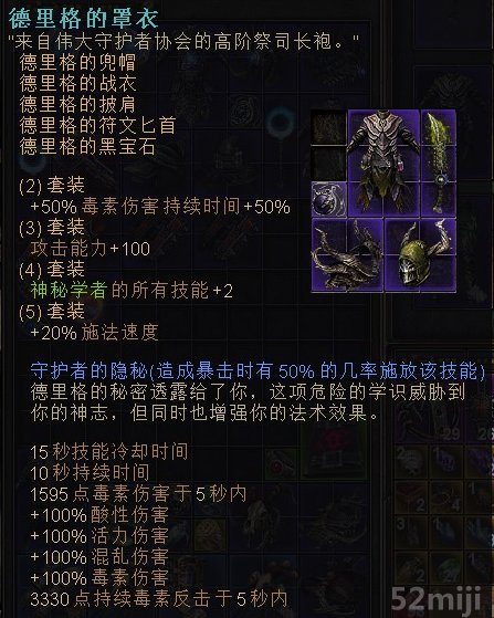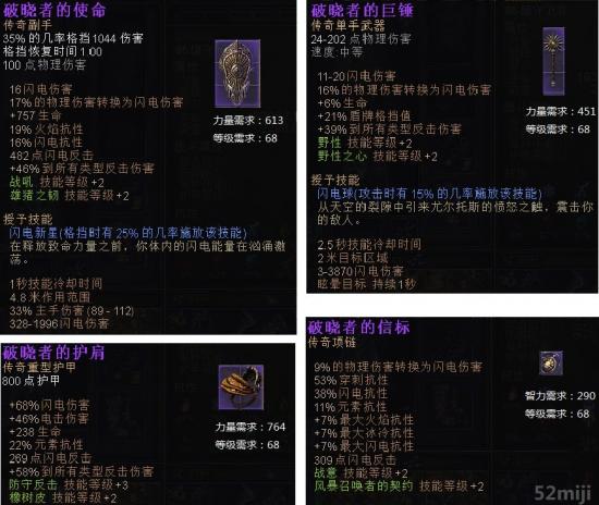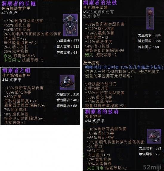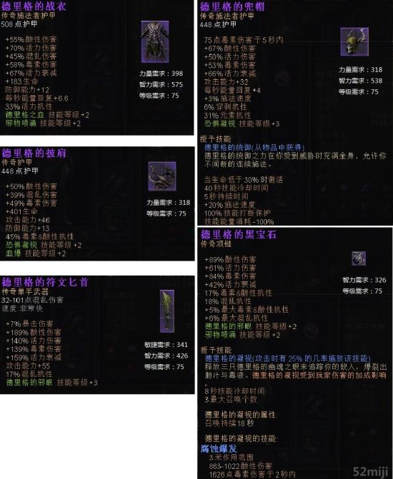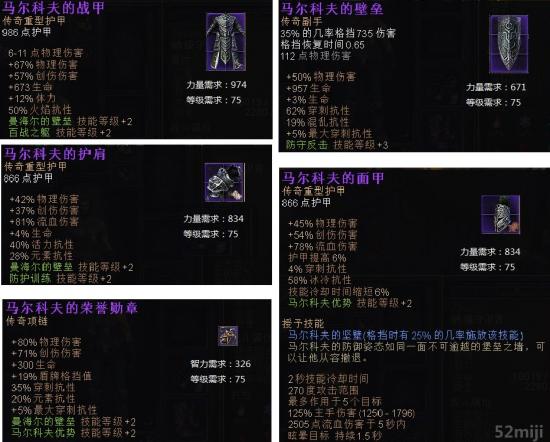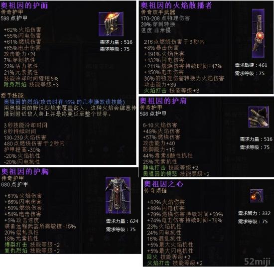 提醒一下新人:紫色套装等级要求较高(68-75级),掉落也比较少,不建议第一个开荒号以此类装备为追求,仅作为参考。