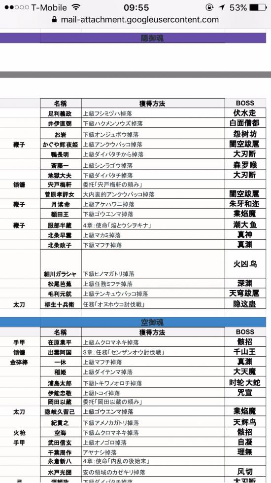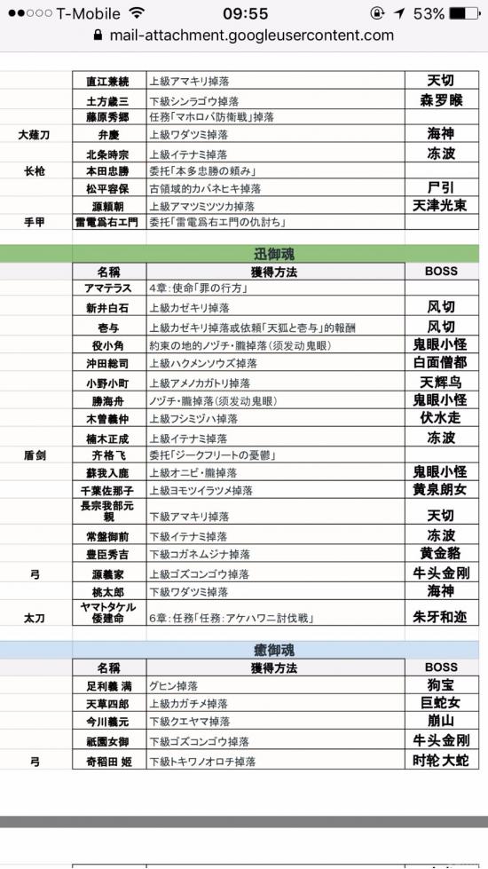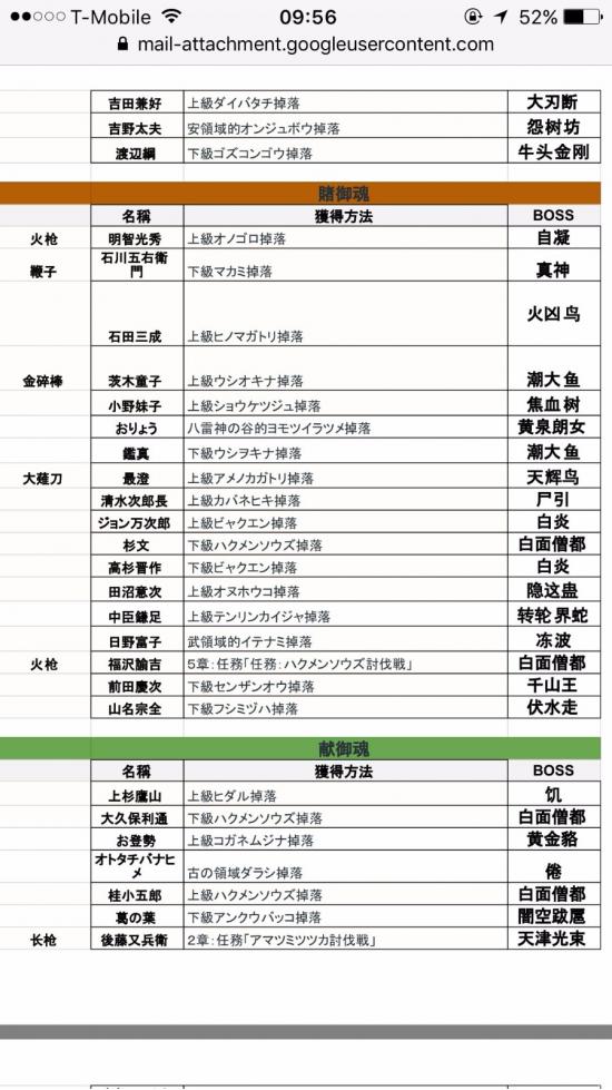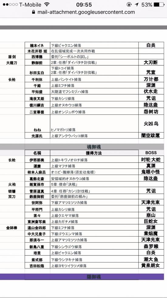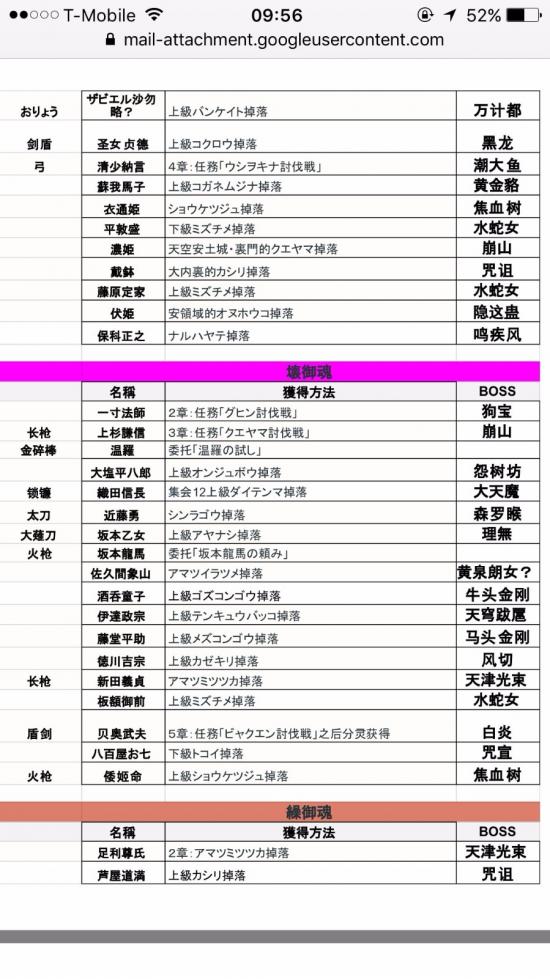分享自己翻译总结的全御魂掉落表,还有对应的魂武。靠此表极大节省了我刷魂,魂武及白金的时间。 基本总结了下魂哪里掉落,以及可以出魂武的御魂 我也是日文苦手,查字典翻译了一下,连蒙带猜相信大家也能懂 注意看好是 上级还是下级BOSS。