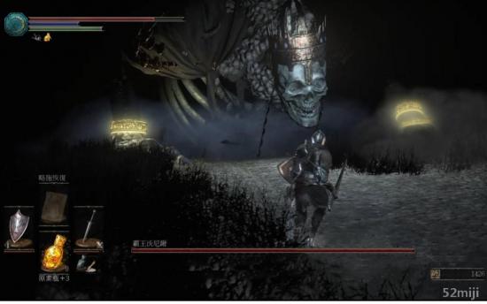 这时候应该洋葱会来帮你,开始先不要管其他的,冲到王座前面捡风暴剑,然后马上返回骨片回篝火(直接现场装备可能武器太多一下找不到,然后洋葱被打死了),把风暴剑装备上,蓄好气,再去打尤姆。这时候洋葱还在,2打1随便打打。