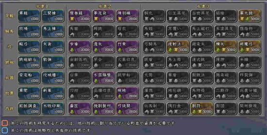 是的,虽然本作在大地图上有了木材、铁矿等资源。但是与许多欧美系战略游戏不同,本作的这些战略资源并不是直接用于生产兵器兵种,而是用于科技研发。这也一直是光荣系游戏独有的游戏理念,我觉得是挺符合我们东方人的战略思维的。除了被具体化到战略地图上的科技资源之外,连研究科技的技术工匠也被具体到了战略大地图之上。一个技术工匠(匠町)对应我们势力的一项科技。如果这项科技需要资源,那么还要对应绑定相应的资源产出地。本作的资源并不是通用的。一处产地的资源只能对应于一项科技,而且一旦决定就无法更换。本作的科技并不是你研究完成之后就不会再丢失了。一旦相应的匠町或者资源失守,我们辛苦研究入手的科技也会一夜之间就失去了。至少从试玩版中我们还不知道如何将一项科技由研究完成转入修得完成。从教程中来看,只有触发剧情才能修得科技,而且不同的大名也有限制。这个秘密要等到正式版之后才能揭晓了。
