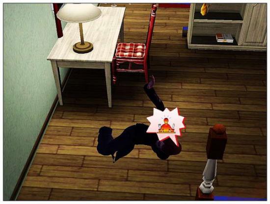 派对结束,大家都走了,却见他立在当地,脚插在地板里。