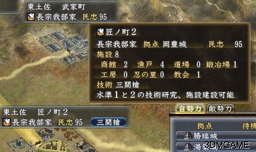 匠/町分为3级,1级可以研究第一类技术,2级可以研究第1和第2类技术,3级可以研究全部技术,但第3类技术必须要有相应的特产町才可以研究。