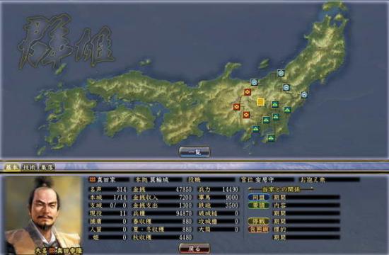 玩了几轮全国模式,越打到后面越没意思,不经意下发现有群雄模式玩,试了一个濑户内霸者,用尼子家全推后非常有成就感,于是就继续寻找好玩的剧本,于是一眼相中了六文钱的真田家,夹在正中间,看来难度非常大了,点击进入选择后我把现况总结如下: