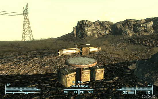 Tesla Cannon,这是一个特殊的特斯拉大炮,是导弹发射器的造型,弹药用导弹,打出来的效果和普通特斯拉大炮一样,在机器人被炸的那地图西边山上的一个桌子上,正常游戏拿不到,只能TCL上去。见下图