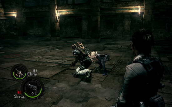 到了这里建议大家RESTART一下换下装备,把2件防弹衣都穿上,一人A拿小手枪,和无限多的喷雾剂。另外一人B拿麦林+火箭筒和喷雾剂若干。之后由拿了火箭筒的B去触发右边铁门的剧情。这个时候要注意,另外一人A千万不要在触发剧情的时候站在铁门附近,如果这样在剧情过后必被歪叔的旋风腿秒。切记!A的主要任务是负责拖住JILL。最好的方法是一开始就跑到左侧的柱子那里躲开歪叔的视线,然后用枪瞄准JILL。这样的话JILL会一直滚来滚去,不会攻击你。而最关键的B,负责速度把歪叔打回老家,没有无限弹的话,一发火箭筒+3,4颗麦林就足够了。