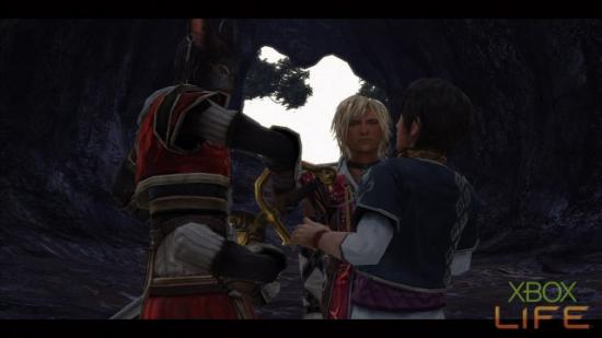 参照说明书也有很详细的说明。接在在往前走一点就会有第一隻头目跑出来,由于是第一场头目战所以可以轻松过关。打到一半拉修的项链就会发光而能使出必杀 技。