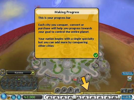 首先还是来看进度槽的作用。要想完成文明阶段,就要对其它城市做点什么。你可以征服其它城市,也可以说服他们降伏于你,甚至可以用资源购买他们的城市。每降伏一个城市,进度槽就会完成一点,降伏全部城市之后就完成文明阶段的进化。