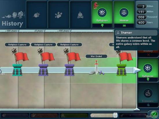 这次历史界面没有太多花头,右侧的三个路线从上到下依然是军事型、传教型、经济型。而最上方则决定了你的职业,在这里看到我的职业是萨满。可以想象,到处给人传教最后不当萨满才是怪事。至于职业说明也没啥营养,无非是说天下大同,萨满与我们同在之类~