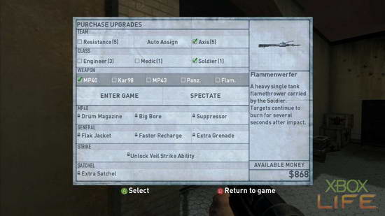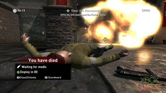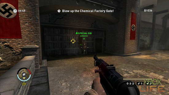 地图方面,总共提供八张地图供玩家选择,分别为BANK(银行)、CANALS(运河)、CHEMICAL(化学工厂)、FACILITY(基地设施)、HOSPITAL(医院)、MANOR(庄园)、ROOFTOPS(屋顶)、以及TESLA(特斯拉)。每张地图都能进行上述的三种模式,也支援最多十二位玩家进场对战。大部份的外国玩家都喜欢玩医院这张地图,因为它的大小适中,执行的任务也位居地图正中央,所以打起来特别刺激。如果对《德军总部》多人连线对战有兴趣的玩家,欢迎加我好友一起打「阿豆仔」。