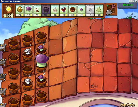 2、在阵型完整之前(本贴7楼的阵型),要时刻保证有100左右的阳光,僵尸出那路就要用在那路了..