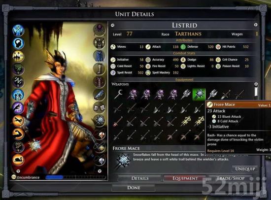 Frore mace: 说点啥好呢。。。物理基础不高,多的那点无视防御的冰霜攻击力前期还有点用,需求还不低。跟主教权杖实在没法比。
