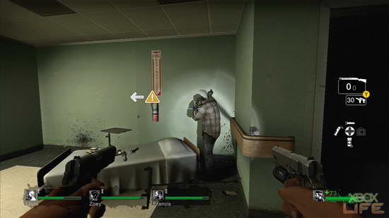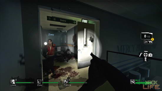 在搜索房间时要格外的小心,因为丧尸都会站在一些令人想不到的地方,另外医院的某些牆壁会被打破跑出很多丧尸,玩家要特别小心。