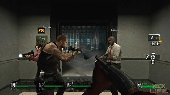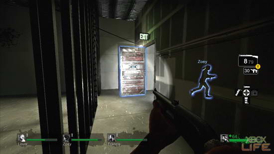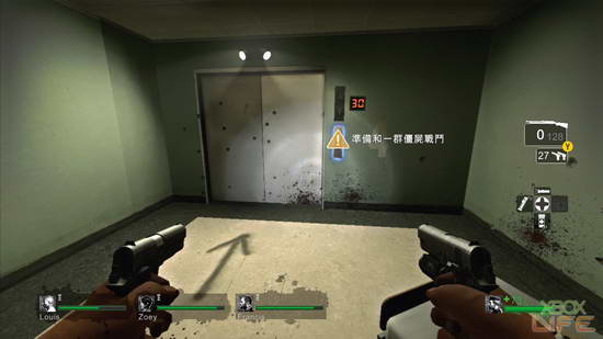 这里会有一部电梯,按下去之后,玩家可以蹲在右前方的角落,以利攻击即将而来的丧尸。