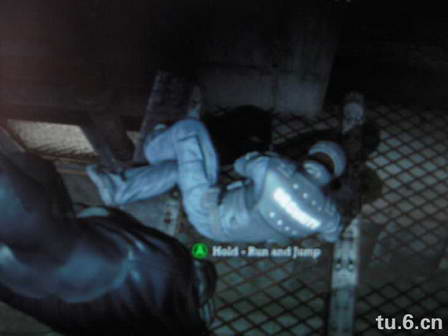 通过攀爬、钩锁、跳跃、平移来到最顶层后在门边遇到一群敌人,冲上去混战吧,这是个赚取连击数的好机会。另外,打斗中如果在敌人快攻击到你时(此时敌人头上会出现特别的标志)按Y进行防守反击的话也可以算入连击里面,这样爽快度大增,我们完全可以像漫画里那样在与敌人奋战时抓住后面敌人偷袭的手腕,然后一脚把他们踢飞。在这里不得不夸一下疯人院战斗系统的独到之处,打斗时的感觉与日式ACT相比显得无比真实许多。