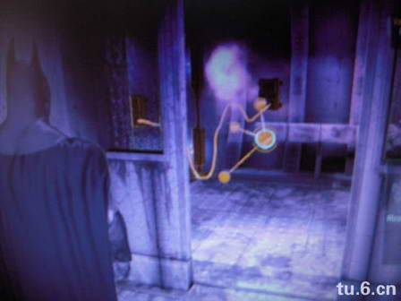 用蝙蝠镖击打这个地方,通风扇就会打开,毒气被排空,任务完成