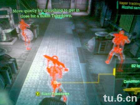 继续往前走,来到一个空旷的大房间,我们追击了很久的凶犯就在前面,但整个区域都布满了敌人的守卫。你有两个选择:要么直接杀进去,以拳头对子弹,要么就是用钩锁绕到他们的后面,静悄悄的让敌人睡着。喜欢玩天诛与细胞系列的笔者当然选择了后者,而且silent takedown对手的话会得到更多的经验哦。全灭敌人后仔细搜索一下屋子吧,把能拿走的都拿走(院长:蝙蝠侠才是真正的强盗............小丑:agree x_x)