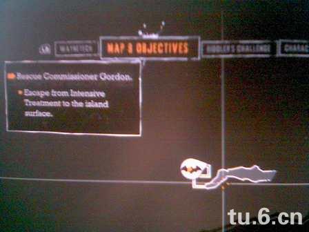 之后来到阿卡汉姆岛南部,沿途搜刮一下吧,有不少问号和录音带。之后顺着线索往医院方向走,全灭掉前面的大批敌人后进入医院。一进门就会看到女小丑在大大咧咧的看押着警长大人(蝙:高登警长我来救你了......警:想我一大把年纪还能被个短裙美女看中真是太爽了,坏蝙蝠不要煞风景!蝙:囧......)前面被电门挡着,需要另外找路