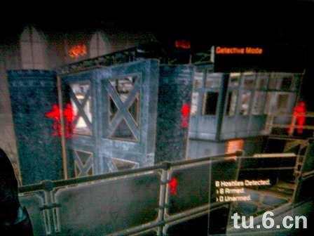 顺着指纹,经过一段流程后会来到一个大房间,这里需要救两个被吊在空中的人质。这里和救高登一样也不可以被发觉。所以要好好计划好路线。先走右边的下水道,出去后左转爬上阶梯,从敌人身后溜过去,前面还有一个敌人,走右侧的低洼处,跳过去后爬上去,再往上就是控制室了。干掉控制室的敌人后,剩下三个敌兵任君鱼肉