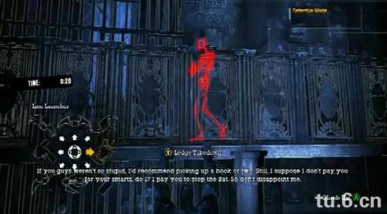 HANG TIME:在高处的雕像按B键进行蝙蝠倒挂,之后按Y键将经过的敌人绑在雕像上