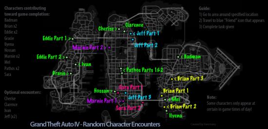 GTA4里面多了很多随机人物,很多决定杀生还是放生的角色都会在后期偶遇Niko,其他的还有跟Niko同船偷渡的Hossan,Jacob的老大哥Badman,Dwyane的前妻Cherise,陌生路人甲乙丙丁等等。