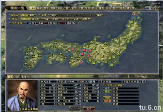 大友是足轻全满,兵器全满(恐怖),内政兵粮筑城有很多。铁炮只有一级的两个技术。