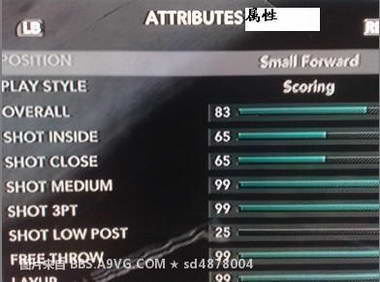 3.关于Slashing冲击型,SG和SF两个位置可以选择,同一位置的上篮/灌篮初始数值