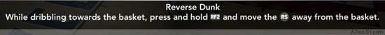 17.反身扣篮,加速带球进攻时,向篮框的反方向拉动摇杆,示例(记得去年明星周末罗斯在技巧大赛最后的一扣吗?)