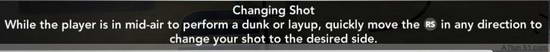 11-12.左边-右边上篮,不按加速带球进攻时,向篮框的左/右拉动右摇杆,示例