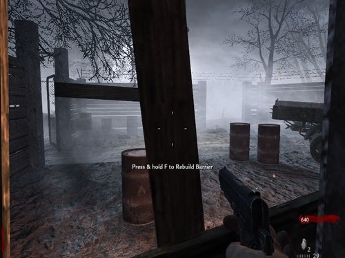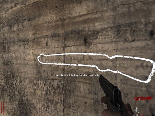 靠近墙上白色的框按F可以买枪和配套的弹药,最初的步枪需要200点。整个房间里有不少地方可以直接买武器,比如散弹枪,BAR轻机枪,卡宾枪以及手雷等